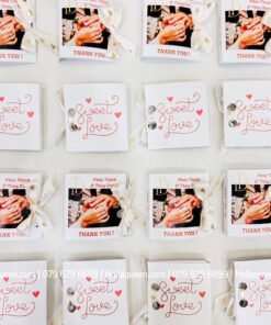 - Cá nhân hóa: In tên cặp đôi, ngày cưới, lời cảm ơn hoặc biểu tượng yêu thương