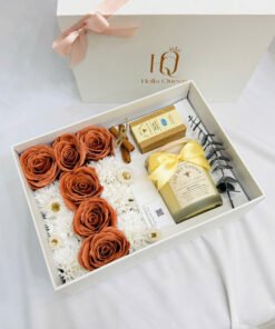 - Hoa trang trí custom TÊN theo yêu cầu tone màu phù hợp với quà tặng.