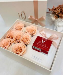 - Box quà trắng size 25*17*10 cm giấy mỹ thuật, ép kim cao cấp.