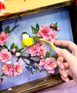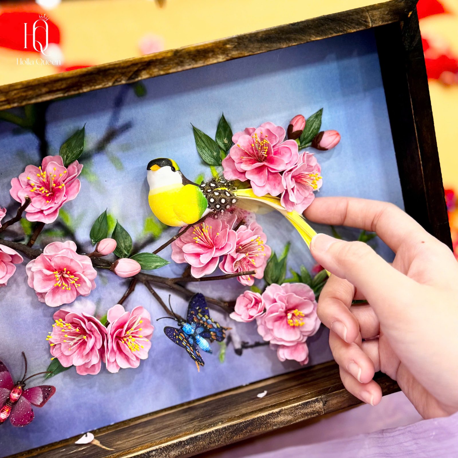 - Tranh khu vườn hoa đào được nặn thủ công từ đất sét