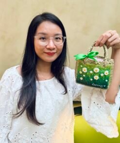 - Túi cỏ bàng vẽ tay – mỗi chiếc túi là một tác phẩm nghệ thuật thủ công, được vẽ tay và đính hoa đất sét hoàn toàn bằng tay – độc đáo, không cái nào giống cái nào.