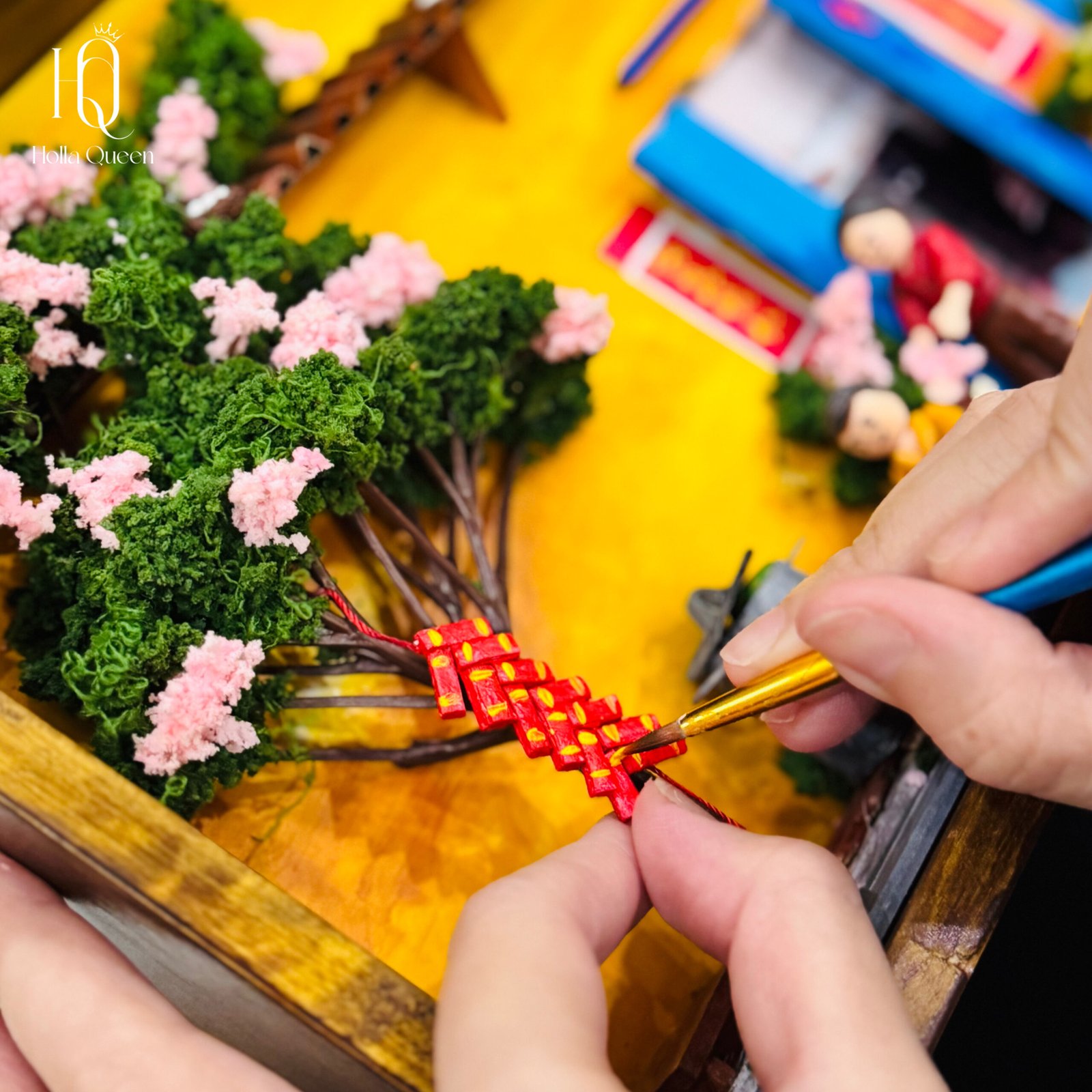 - Tranh mô hình tiểu cảnh Tết được làm thủ công.